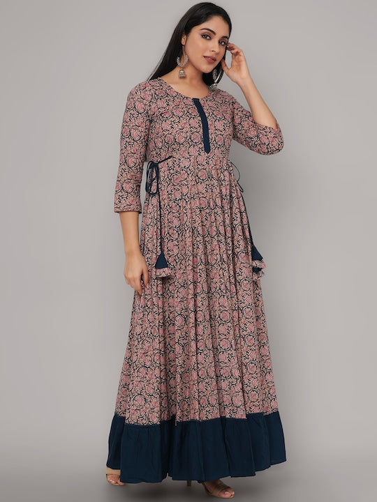 SANGANERI KURTI Women Women Rayon Floral Printed Long Kurta Latest Jaipur Kurti